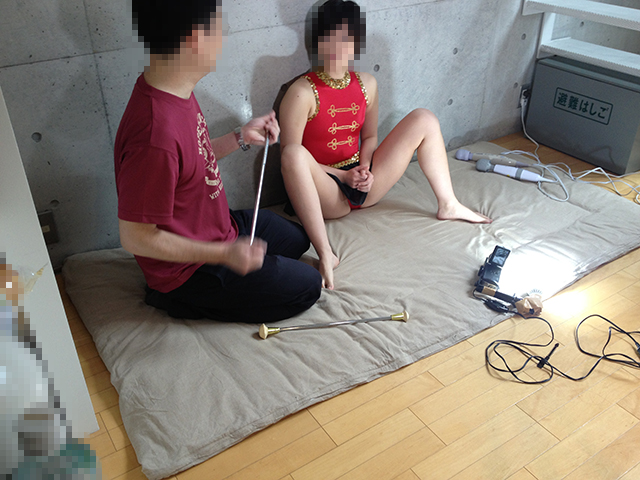 バトンで拘束された女優さんを監督があの手この手でいたぶります。